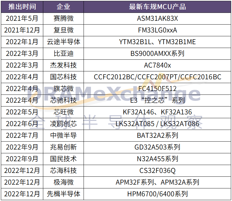 一方面是受到需求爆发的因素,国产企业加速布局车规级MCU,仅在过去一年多时间里,就有将近20家企业推出了车规级MCU产品,有些已经通过认证,有些还在认证之中,另有少部分企业的车规级MCU产品已经上车。